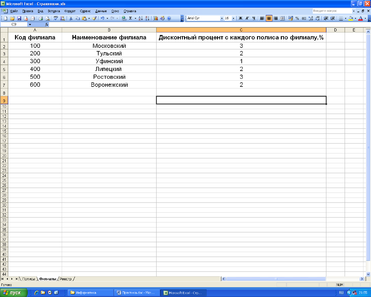1) Заполнить «Наименование филиала» с помощью функции ВПР. Для этого ввести формулу: =ВПР(A2;Филиалы!A2:B7;2;1) и размножить ее далее по строкам данного столбца.