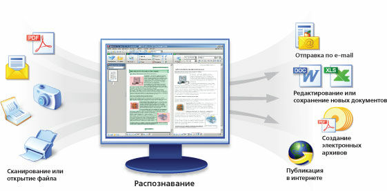 Интеллектуальная система оптического распознавания ABBYY FineReader 9.0 позволяет быстро и точно переводить бумажные документы, цифровые фотографии документов и PDF-файлы в электронный вид. При распознавании ABBYY FineReader полностью сохраняет оформление документа: иллюстрации, картинки, списки и т. д. Полученные результаты можно исправлять в программах Microsoft Office, сохранять в разных форматах, отправлять по электронной почте и публиковать в интернете.