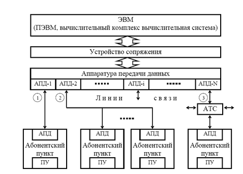 Рис. 1.1. Структура системы телеобработки данных