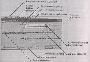 Рис. 4. Строка формул и диалоговое окно Аргументы функции