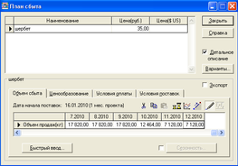 Рис. 20 Окно «План сбыта» из меню «Операционный план»