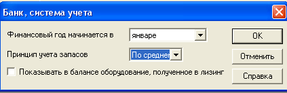 Возвращаемся в меню Компания и нажимаем кнопку Банк, система учета, устанавливаем принцип учета запасов – по среднему