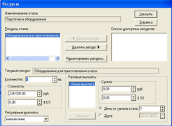 Рис.14 Окно «Ресурсы» из меню «Редактирование этапа проекта»