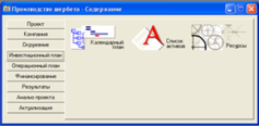 Рис. 11 Окно «Инвестиционный план» из основного меню