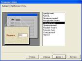 Следующее окно мастера служит для выбора стиля оформления новой формы