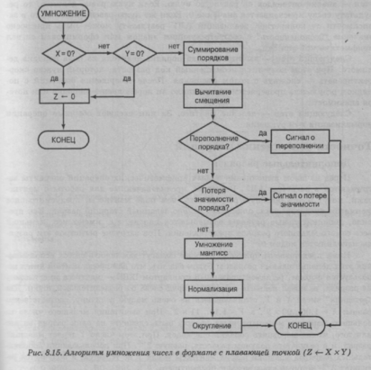 Алгоритм умножения чисел в формате с плавающей точкой.