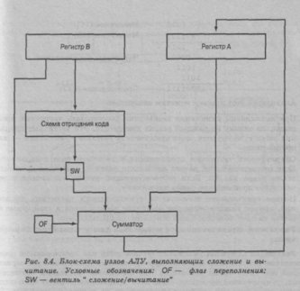 Блок-схема узлов АЛУ, выполняющих сложение и вычитание.