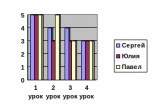 Пример: в данной диаграмме мы можем увидеть, как к концу учебного дня изменяется количество сил и умственных способностей у детей. Слева указаны оценки, внизу – какой по счету прошел урок, справа – «участники» диаграммы.