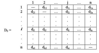 Расстояние между узлами i и j равно элементу dij в матрице Dn.