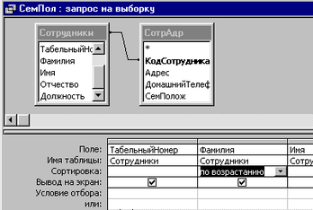 рис.1.19 Создание запроса «СемПол»в режиме конструктора