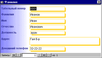 В результате запроса открывается форма «Фамилия» (см.рис.1.18.)