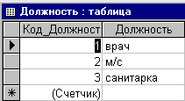 - Таблица «Должность» с полями КодДолжн и Должность (см. рис. 1.6.)