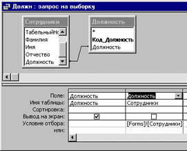 рис. 1.22 Запрос на выборку по полю «Должность»