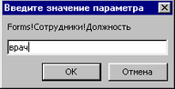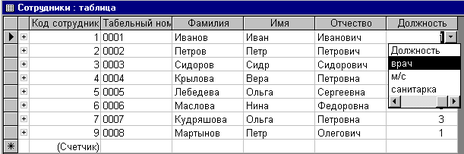 Для более удобной работы при заполнении таблицы «Сотрудник» поле «Должность» имеет подстановку из справочника «Должность» (см. рис. 1.4)