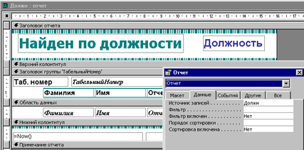 Отчет «Списки по должностям» создан в режиме конструктора (см. рис.1.24)