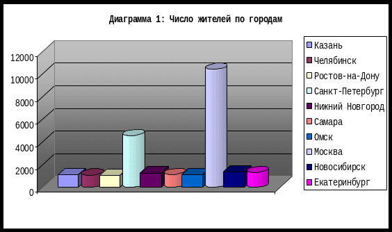 Основная задача: построить диаграмму, отражающую число жителей в каждом из городов.