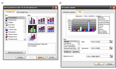 Рисунок 1 – Общий вид окна «Мастер диаграмм» (а) и набранные исходные данные диаграммы 1 (б)