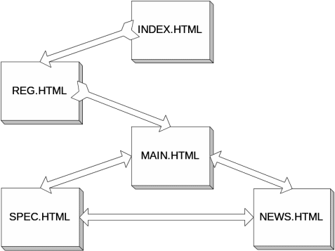 Создание сайта предполагает разработку структурной схемы – навигации сайта, таким образом, в данном разделе я опишу в виде схемы принцип функционирования разрабатываемого мной web-сайта. Эта схема представлена на рисунке 1.