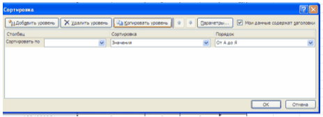 Рис. 3.4 - Окно Сортировки по нескольким столбцам