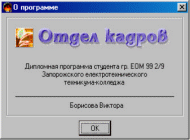 В меню головної форми “Справка” “О программе" активізує вікно з відповідною назвою, у якому можна переглянути інформацію стосовно програми (рисунок 7).