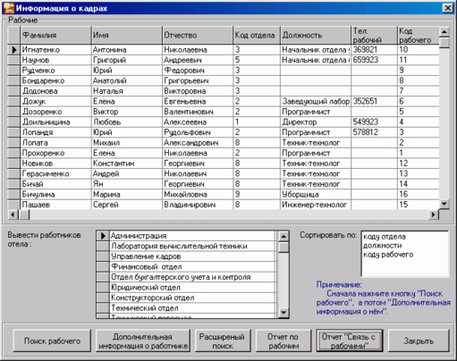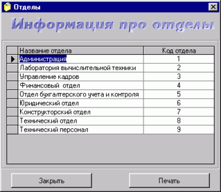 Кнопка “Отделы" активізує вікно “Отделы" (рисунок 4).