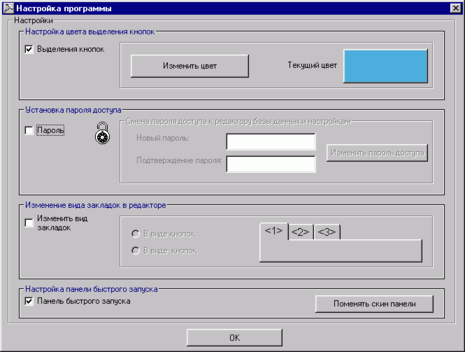 В меню головної форми або на панелі швидкого запуску кнопка “Настройки” активізує вікно “Настройки программы" (рисунок 6).