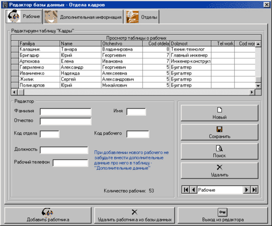 Рисунок 5 - Вікно “Редактор базы данных - Отдела кадров”