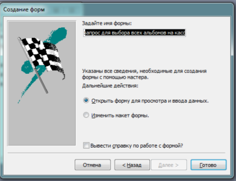 Захожу в мастер форм, выбираю таблицу альбомы и переношу все данные из доступных полей в выбранные поля, нажимаю далее