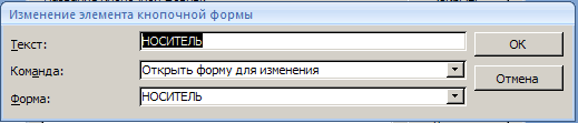 Нажимаю создать. В поле команда выбираю открыть форму для изменения, в поле форма – носитель. Нажимаю ок