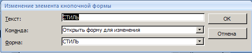 Нажимаю создать. В поле команда выбираю открыть форму для изменения, в поле форма – стиль. Нажимаю ок