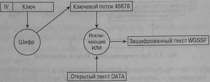 Спецификация стандарта 802.11 предусматривает обеспечение защиты данных с использованием алгоритма WEP. Этот алгоритм основан на применении симметричного поточного шифра RC4. Симметричность RC4 означает, что согласованные WEP-ключи размером 40 или 104 бит статично конфигурируются на клиентских устройствах и в точках доступа. Алгоритм WEP был выбран главным образом потому, что он не требует объемных вычислений. Хотя персональные компьютеры с беспроводными сетевыми картами стандарта 802.11 сейчас широко распространены, в 1997 году ситуация была иной. Большинство из устройств, включаемых в беспроводные LAN, составляли специализированные устройства (application-specific devices, ASD). Примерами таких устройств могут служить считыватели штрих-кодов, планшетные ПК (tablet PC) и телефоны стандарта 802.11. Приложения, которые выполнялись этими специализированными устройствами, обычно не требовали большой вычислительной мощности, поэтому ASD оснащались слабенькими процессорами. WEP - простой в применении алгоритм, для записи которого в некоторых случаях достаточно 30 строк кода. Малые непроизводительные расходы, возникающие при применении этого алгоритма, делают его идеальным алгоритмом шифрования для специализированных устройств.