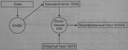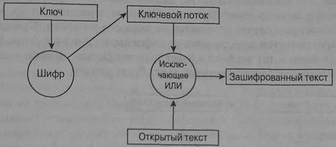 Рис.1 - Шифрование с использованием поточного шифра без применения вектора инициализации