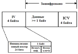 Чтобы избежать шифрования в режиме ЕСВ, WEP использует 24-разрядный вектор инициализации, который добавляется к ключу перед выполнением обработки по алгоритму RC4. На рис. 4 показан фрейм, зашифрованный по алгоритму WEP с использованием вектора инициализации.