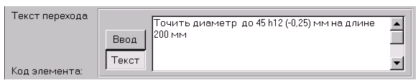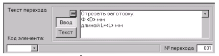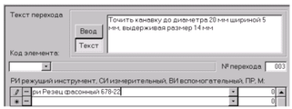 Кроме заполнения переходов и операций посредством выбора их элементов из Информационной базы, имеется возможность прямого ввода с клавиатуры нового оснащения, наименований операций, текстов переходов. Вводимые с клавиатуры данные могут запоминаться в ИБ и использоваться в дальнейшем.