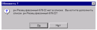 Выбор кнопки [Да] вызовет добавление наименования резца в ИБ и перевод курсора в следующую строку оснащения.