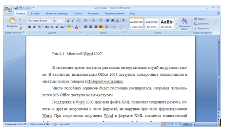 На рисунке 5 изображено окно работы в Microsoft Word 2007.