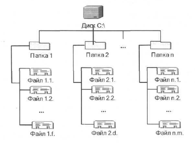 В иерархической БД существует упорядоченность элементов, для которой характерна подчиненность объектов нижнего уровня (потомков) объектам верхнего уровня {предкам), что продемонстрировано на Рис.1. Иерархию образуют, например, папка с файлами, хранимыми на диске, а дерево папок - наглядный пример иерархической структуры БД.