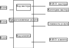 | Предоставляемые мастером услуги | Код клиента | ФИО клиента |