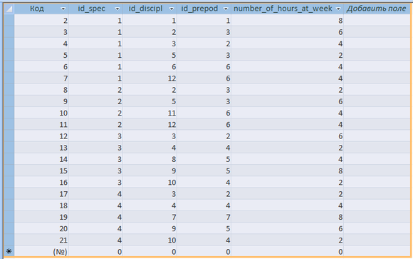 Таким образом, имеем нормализованную реляционную базу данных, в которой очень легко производить изменения. Так, например, если некий преподаватель уволился и вместо него пришел другой преподаватель и взял на себя все те же самые его часы, то достаточно (если нет необходимости в сохранении записей уволенного преподавателя) изменить имя ушедшего преподавателя на имя нового. Изменение названия специальности (например, если «Госуправление» переименуют в «Муниципальное управление») не отразится на связях в таблице, изменится лишь название специальности в таблице SPEC. Изменение наименования дисциплины, либо изменение ее вида опять же не приводит к существенным изменениям. Централизованное повышение почасовой ставки сразу всем сотрудникам, занимающим одну должность, производится через таблицу DOLJNOST. Используя таблицу PLAN мы можем очень быстро (и не затрагивая содержимого остальных таблиц) изменить учебный план, добавить новые часы, удалить исключенные из плана занятия, сменить преподавателя, изменить число часов.