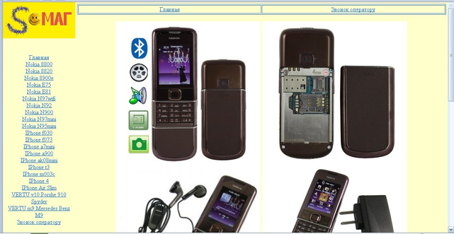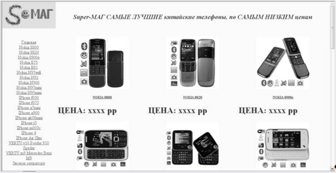 8. Количество страниц сайта: сайт содержит следующие html страницы: 1—Главная (домашняя) страница; 2…22—Вид товара с описанием характеристик;23—Страница заказа ( Звонок оператору).