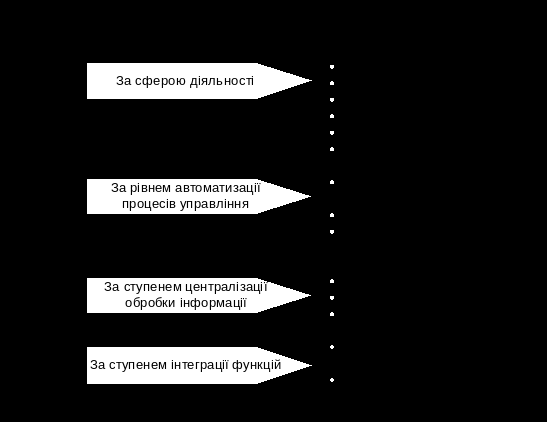 За рівнем автоматизації процесів управління — інформаційно-пошукові, інформаційно-довідкові, інформаційно-керівні, системи підтримки прийняття рішень, інтелектуальні АС.