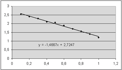 - в ячейку В4 вводим формулу = - 1,4667*В1+ 2,7247 ( получаем 2,578 )