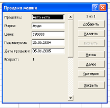 Рис.1. Заполнение таблицы при помощи формы данных.