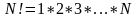 нужно сформировать ряд чисел от 1 до N с шагом 1 и перемножить их. Для создания таких рядов в Mathcad используются ранжированные переменные. В простом случае для создания ранжированной переменной используется выражение