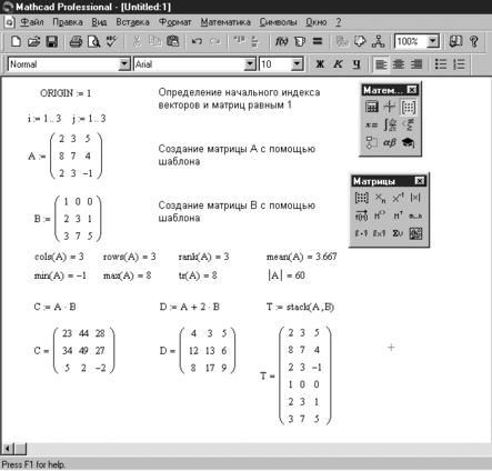 Примеры работы с матрицами приведены на рисунке 2.2.