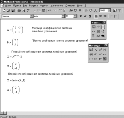 . Два способа решения этой системы уравнений в Matcad приведены на рисунке 2.3.