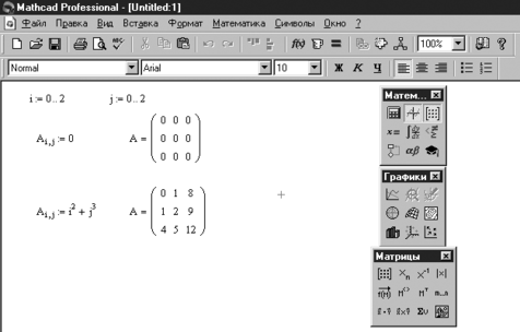 Рис. 2.1 Пример создания матриц без использования шаблонов матриц