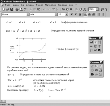 И в-третьих, совместно применение текстового редактора, формульного транслятора и графического процессора позволяет пользователю в ходе вычислений получить готовый документ.