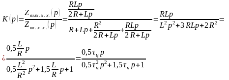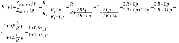 По известной формуле из теории четырехполюсников находим передаточный коэффициент заданной цепи: