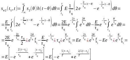 Рассчитываем отклик на выходе методом временного интегрирования, используя интеграл Дюамеля: